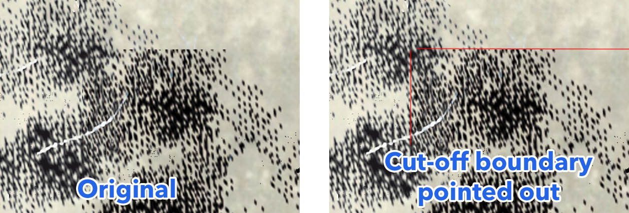 Zooming into the upper left corner, there is a weird rectangular area where the dots just cut off.