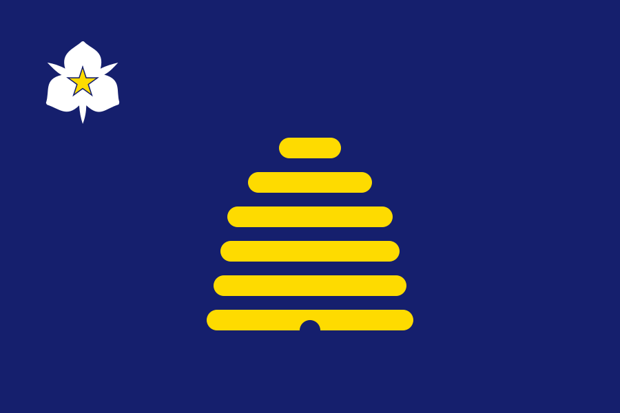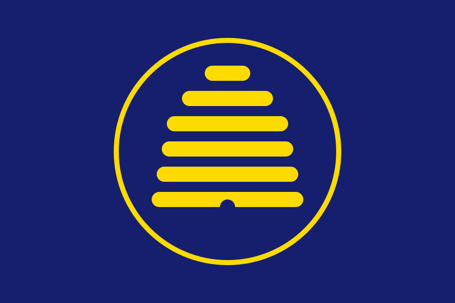 This design incorporates the blue field from the current Utah flag and a stylised beehive. The beehive is an established symbol of Utah’s togetherness and industry, featuring on the current Utah flag, the old Utah Territory flag, the official state emblem, the state highway marker and the unofficial state nickname (“The Beehive State”).