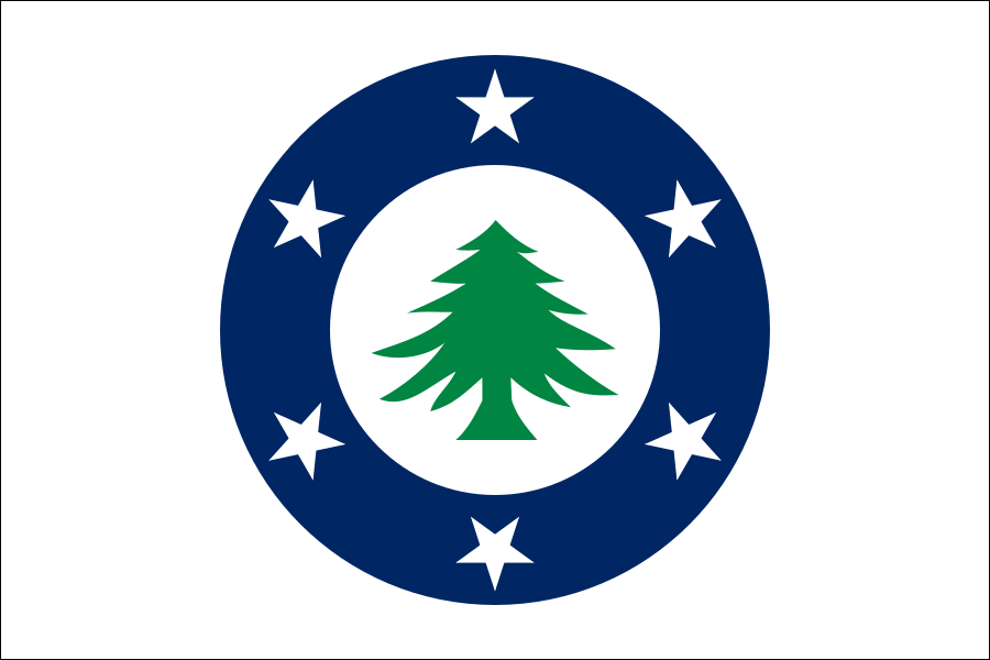 This design’s central feature is the pine tree, a symbol of the New England region, shipbuilding, peace and brotherhood. This symbol has been in use for hundreds of years by indigenous people (featured on the Hiawatha Belt), English colonists (featured on coinage) and independent Americans (featured on flags and coinage).