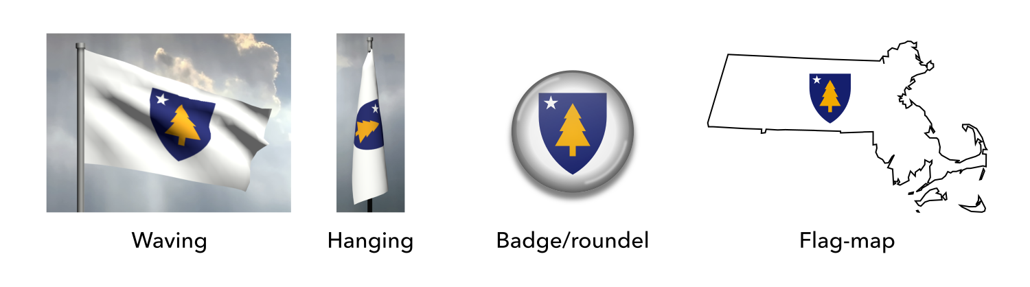 Mock-ups of the proposed flag of Massachusetts (shield concept)