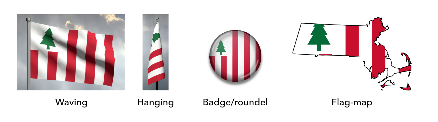 Mock-ups of the proposed flag of Massachusetts (Sons of Liberty concept)